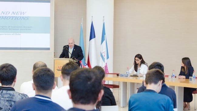 On October 7, ADA University welcomed Chargé d'affaires of the Republic of Chile in Azerbaijan, Mr. Gabrial Jara Maldonado who lectured about innovation, new tools for promotion, and world practice on using modern promo instruments.