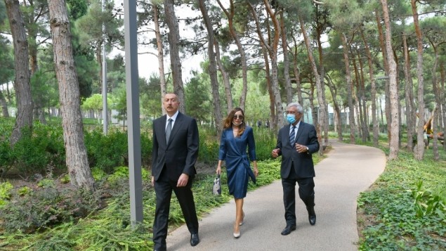 The President and the First Lady became familiar with the conditions created in the new park of ADA University campus. With an area of 4 hectares, the main part of ADA park is largely surrounded by a green zone with 280 plant species.