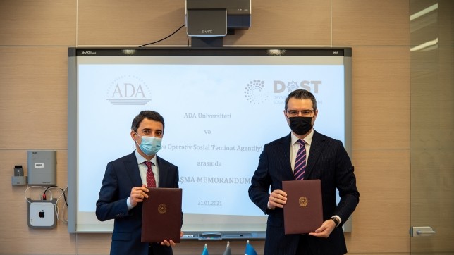 The MoU was signed by ADA University Vice-Rector Fariz Ismayilzade and Chairman of the Board of the DOST Agency Farid Mammadov.