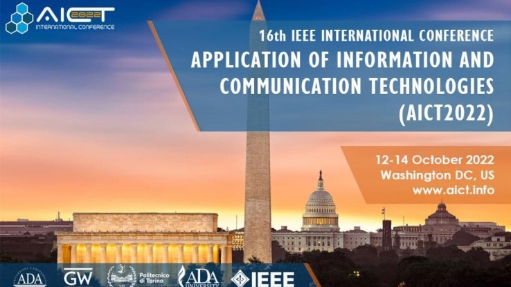 The 16th IEEE International Conference on Application of Information and Communication Technologies (AICT2022) will be co-organized by ADA University, George Washington University, Politecnico di Torino, IEEE Azerbaijan Joint Chapter and to be held in Hybrid mode on 12-14 October 2022 in Washington DC. The conference is hosted by Washington Center of ADA University endorsed and technically supported by the Institute of Electrical and Electronics Engineers (IEEE), the world’s leading professional association with more than 450,000 members worldwide for the advancement of science, engineering and technology with its corporate office in New York City.