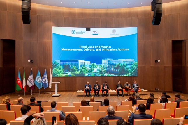 Mr. Muhammad Nasar Hayat, Representative of FAO in Azerbaijan, spoke about the global factors affecting sustainable agriculture, water, and food security, and he emphasized the significance of protecting our future through the proper use of water. In addition, he congratulated the United Nations' celebration of International Rural Women's Day on October 15, stating, "When rural women have fair access to resources and education, they become powerful agents of change." He concluded by congratulating everyone on the occasion of World Food Day, the opening of the School of Agricultural and Food Sciences, and the International Day of Rural Women. At the conclusion of the speech, the video appeal of FAO Director General Dr. Gu Dong Yu was released.