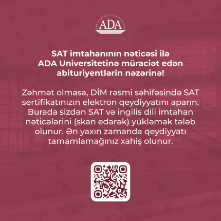 SAT imtahanının nəticəsi ilə ADA Universitetinə müraciət edən abituriyentlərin nəzərinə!