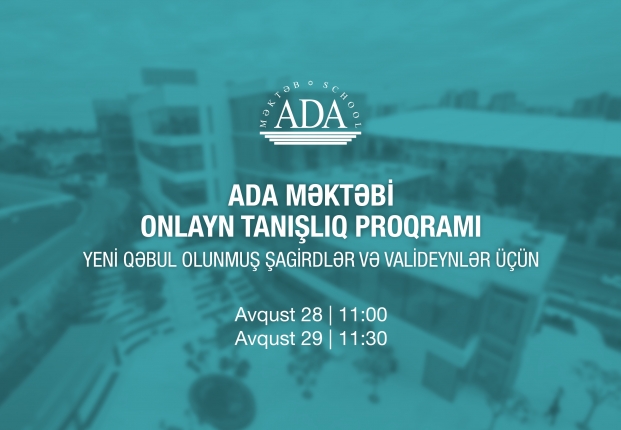 ADA Məktəbinə yeni qəbul edilmiş şagirdlər və onların valideynləri üçün onlayn “Tanışlıq Günləri” keçiriləcək